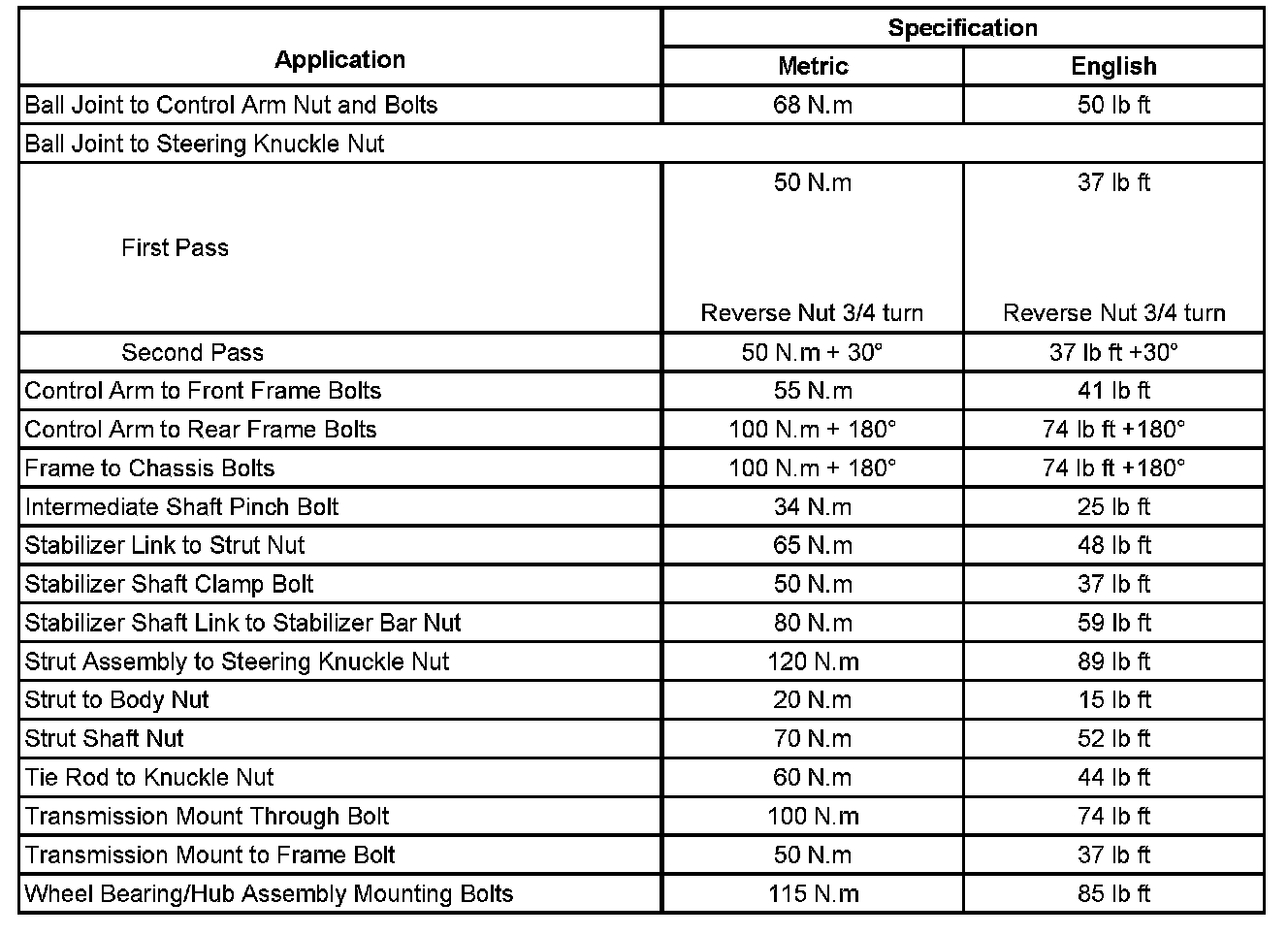 Fastener Tightening Specifications: