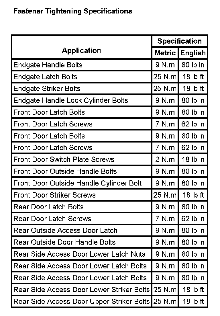 Fastener Tightening Specifications: