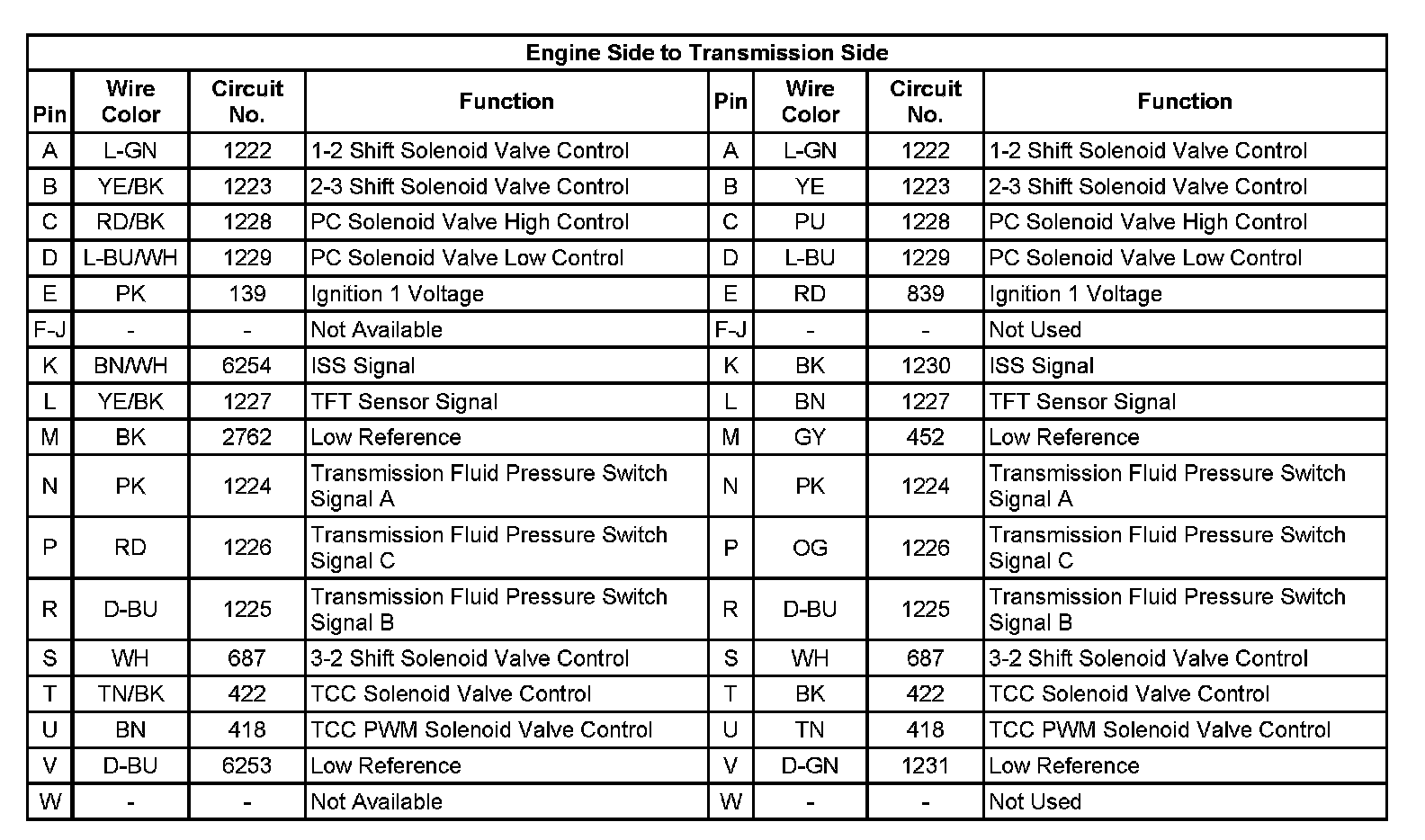 Automatic Transmission Inline 20-Way Connector End View