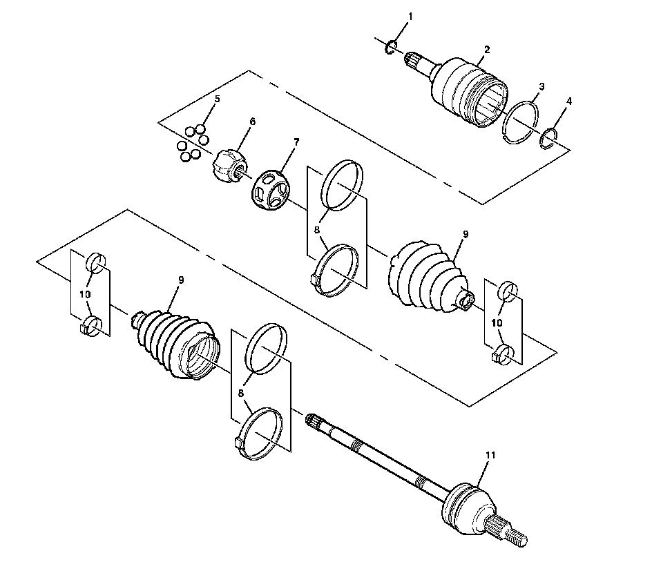 Wheel Drive Shafts Disassembled Views