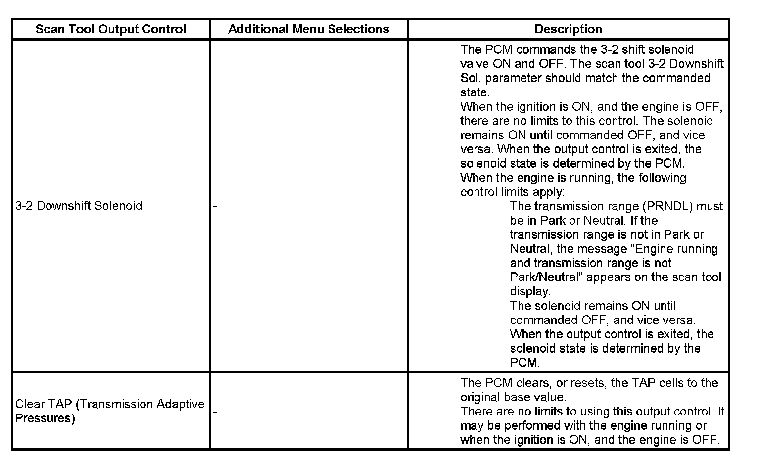 Home >> Chevrolet >> 2007 >> Colorado 2WD L4-2.9L >> Repair and Diagnosis >> Powertrain Management >> Transmission Control Systems >> Testing and Inspection >> Scan Tool Output Controls