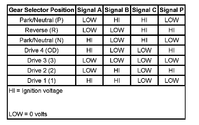 Transmission Range Switch Logic: