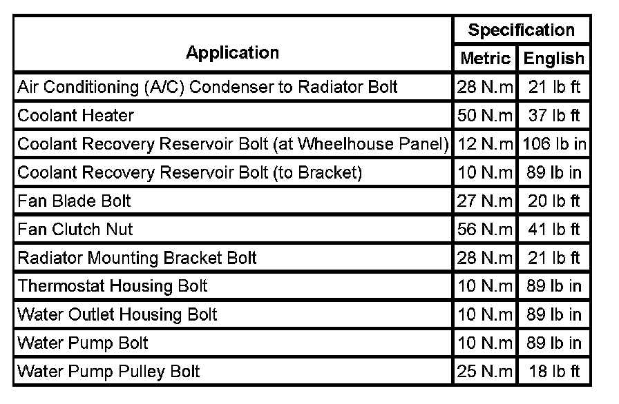 Fastener Tightening Specifications: