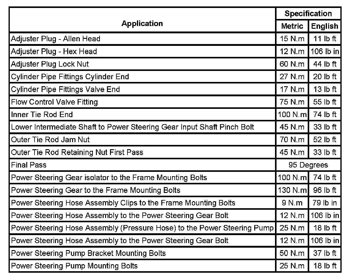 Fastener Tightening Specifications:
