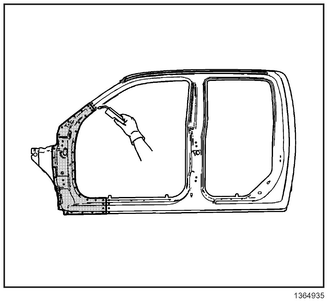 5. Note the location and remove the sealers and anti-corrosion materials from the repair area, as necessary.