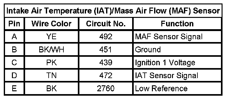 Intake Air Temperature (IAT)/Mass Air Flow (MAF) Sensor
