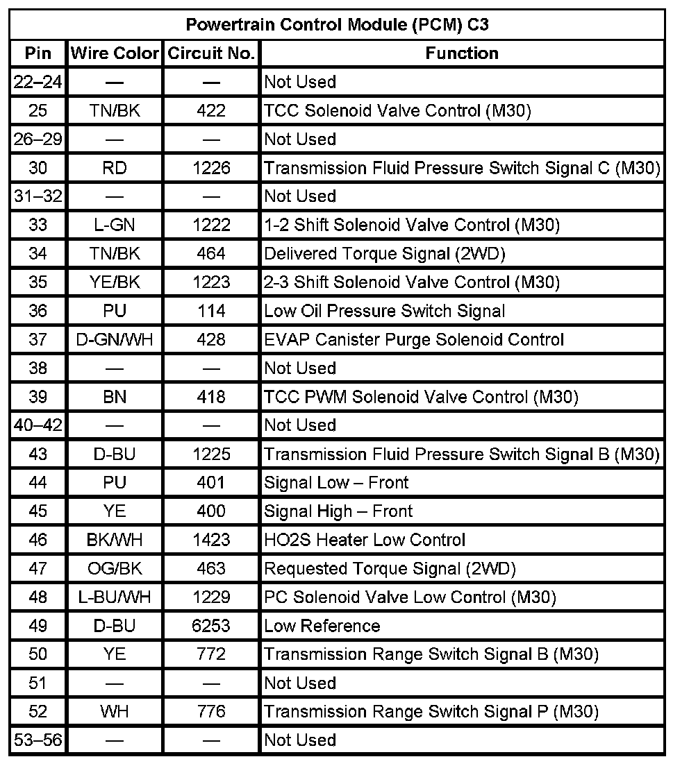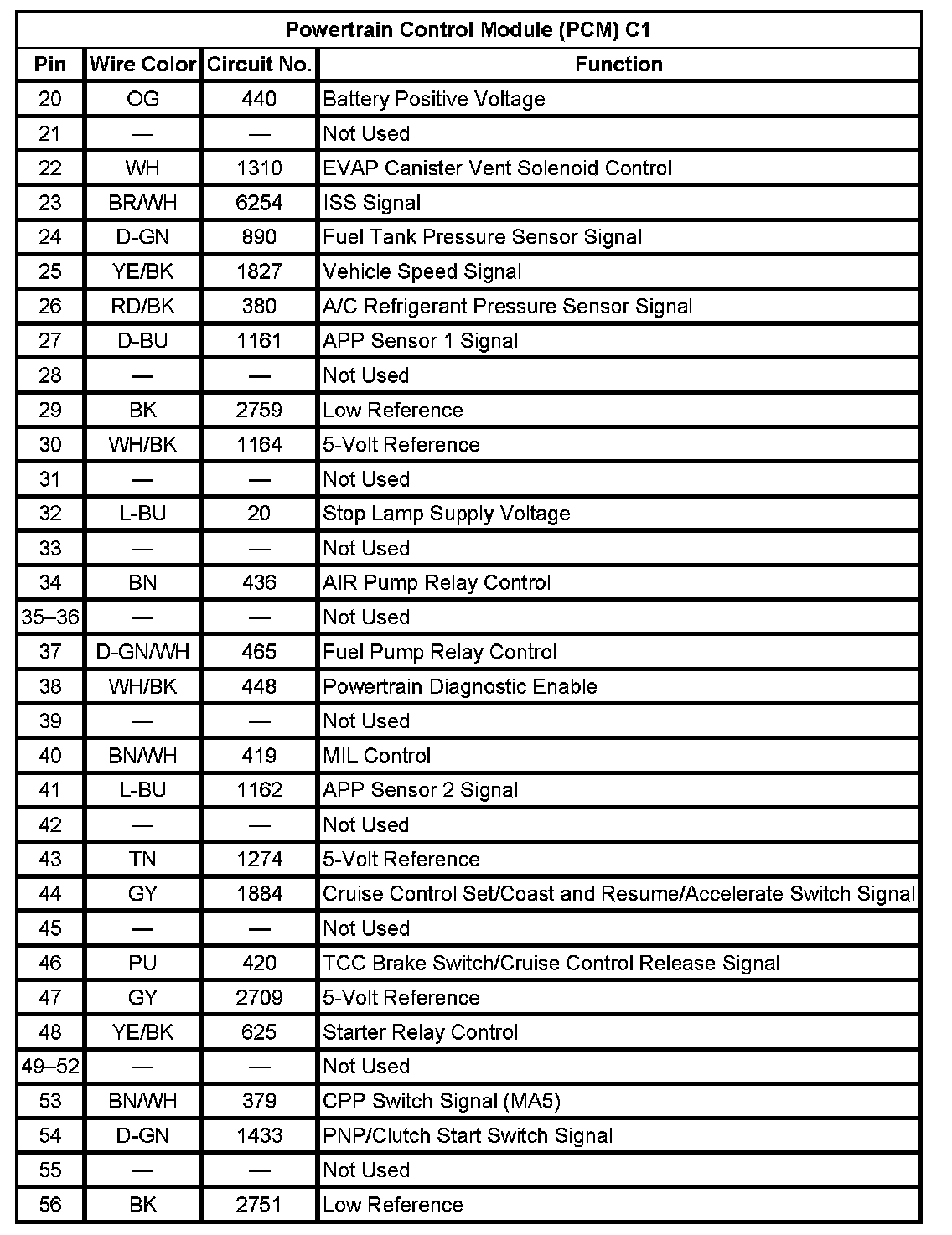 Powertrain Control Module (PCM) C1 (Pin 20 To 56):