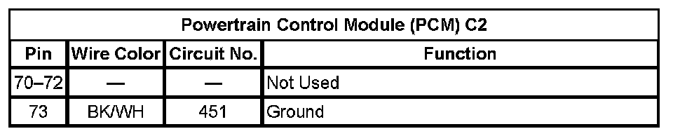 Powertrain Control Module (PCM) C2 (Pin 70 To 73):
