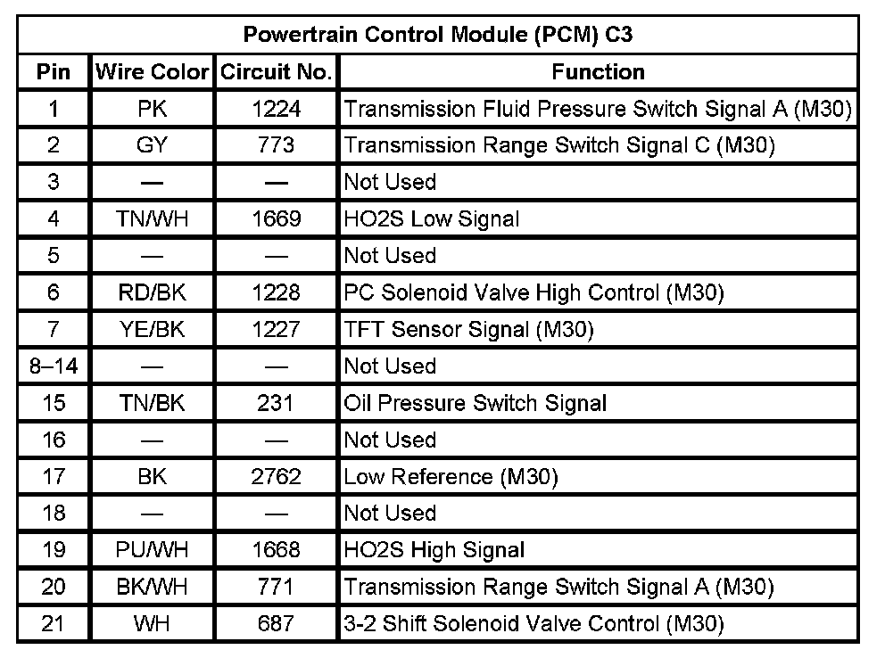 Powertrain Control Module (PCM) C2 (Pin 1 To 15):