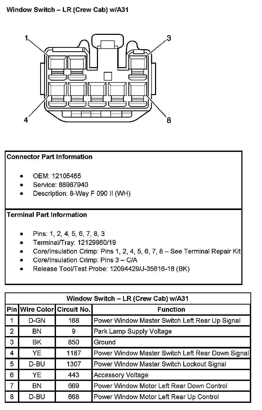 Window Switch - RR (Crew Cab) (With RPO Code A31):