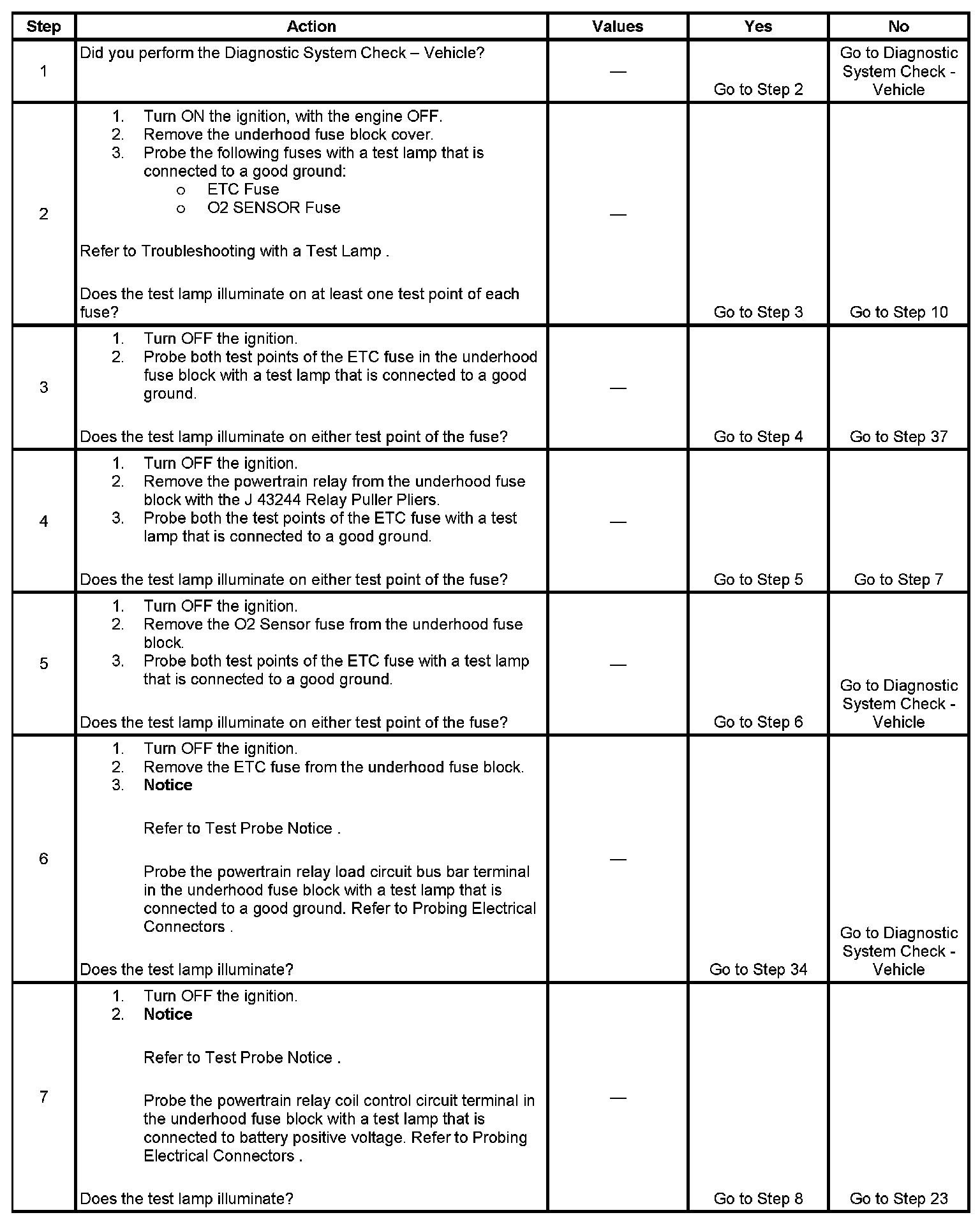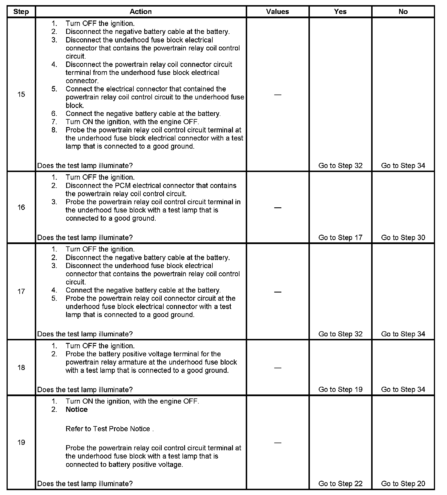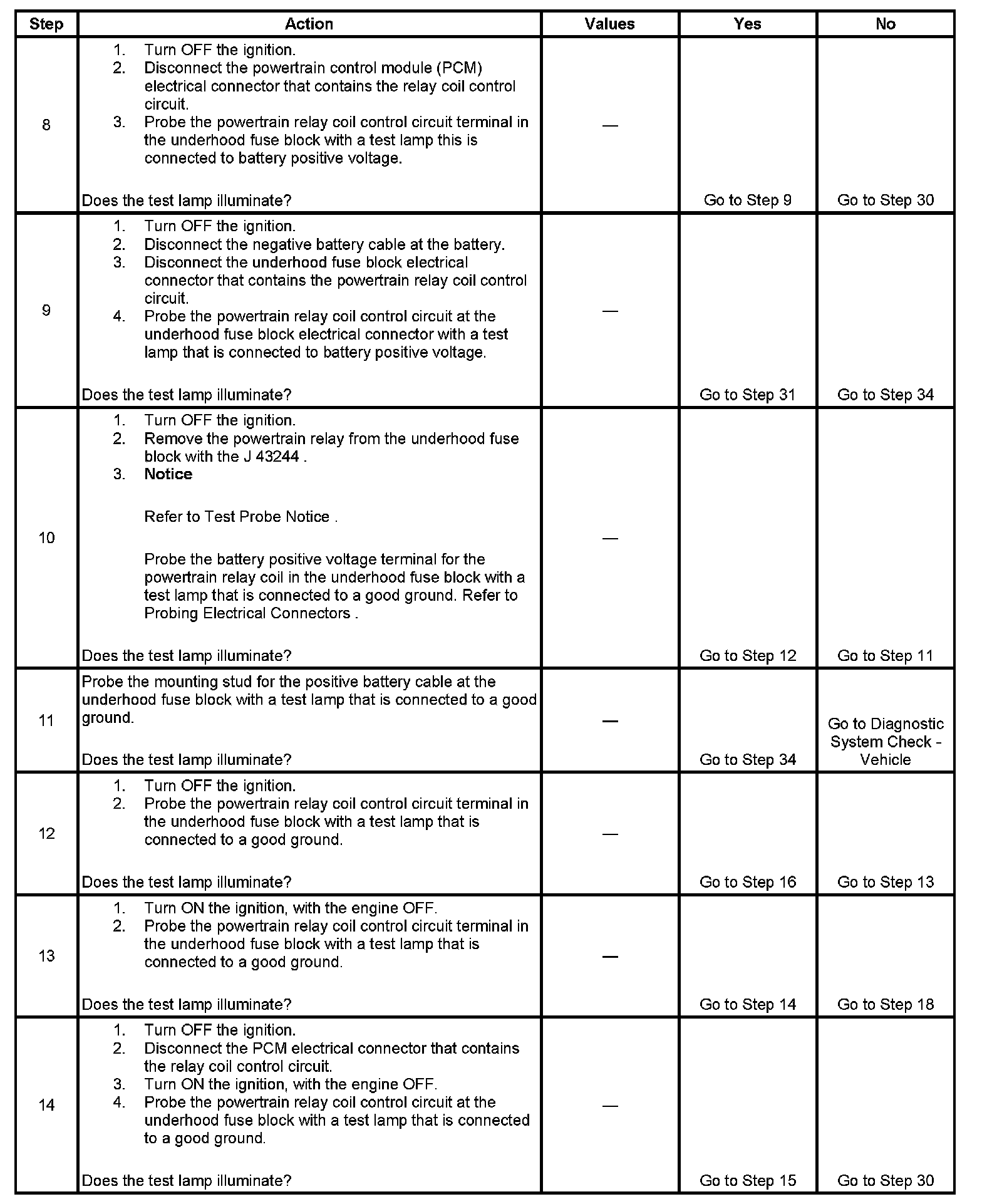 The powertrain relay system diagnosis table assumes that the vehicle battery if fully charged. Refer to Battery Inspection/Test (Non-HP2). Battery Inspection/Test (Non-HP2)