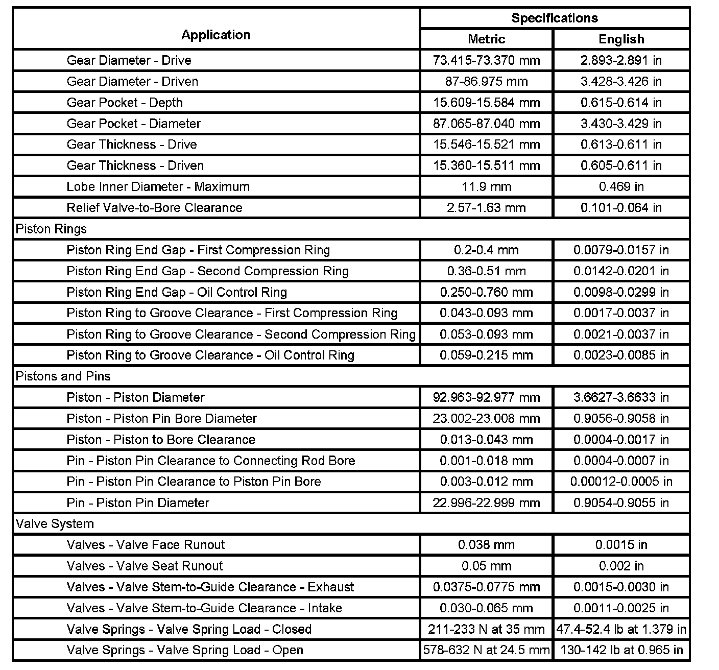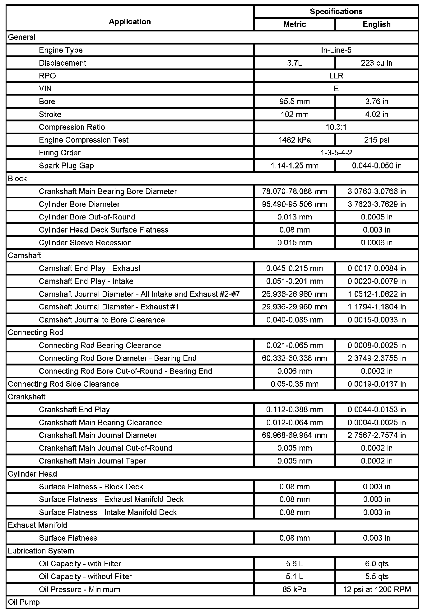 Engine Mechanical Specifications (Part 2):