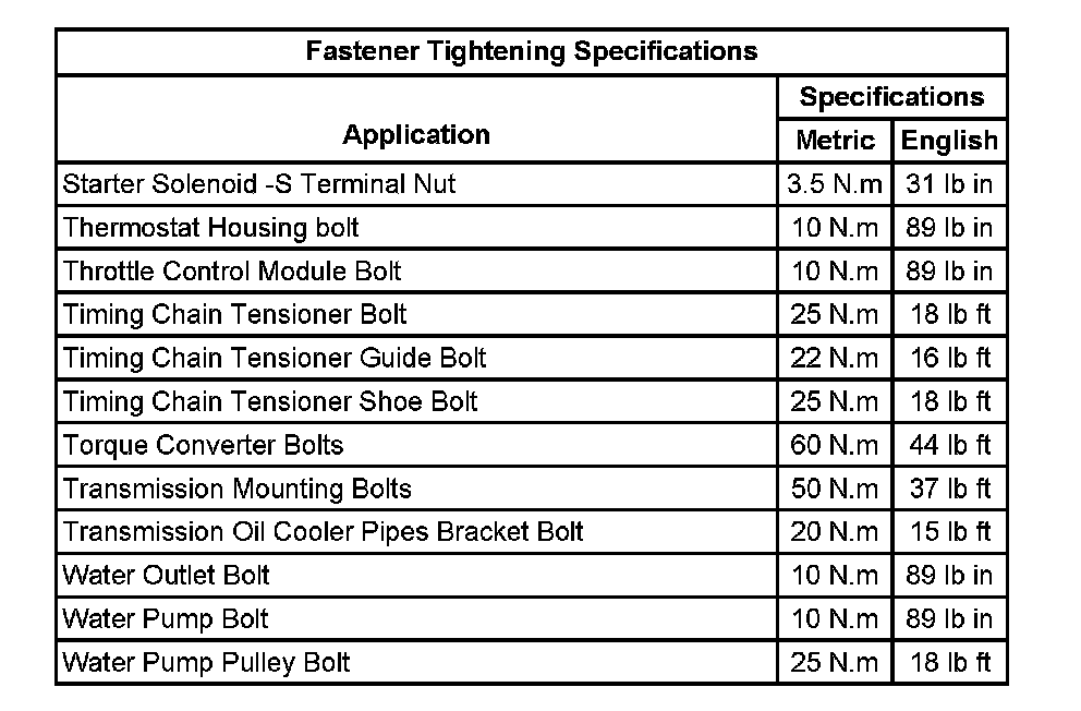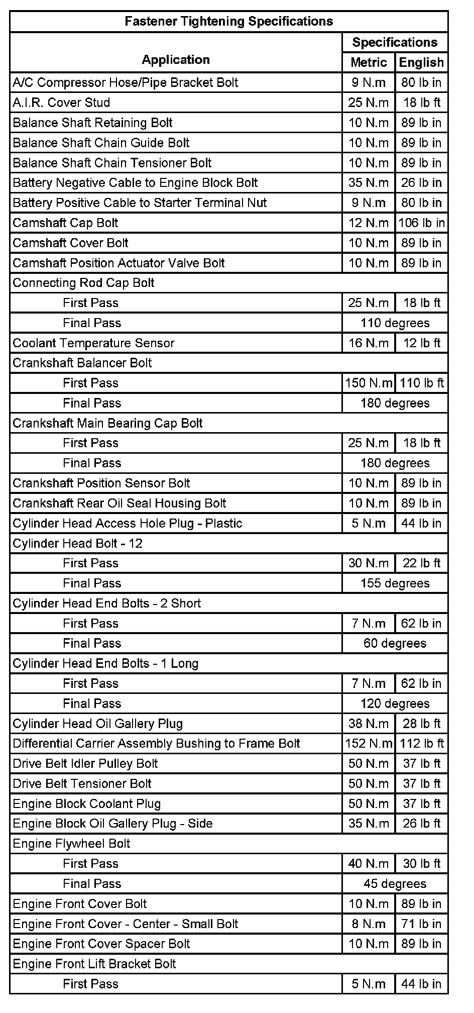 Fastener Tightening Specifications