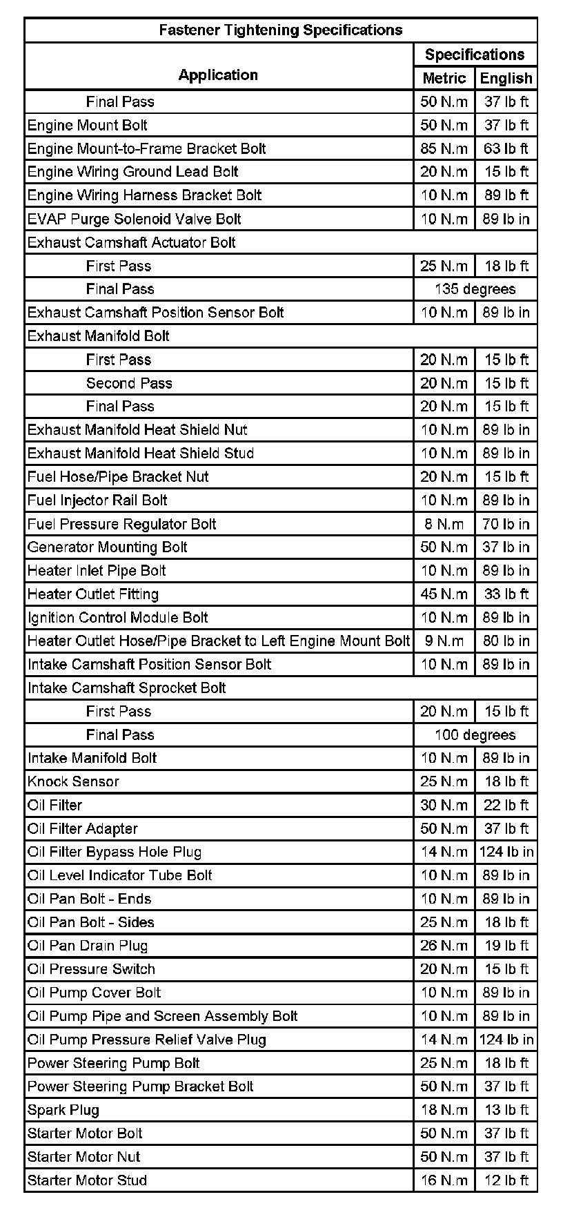 Fastener Tightening Specifications (Part 1):