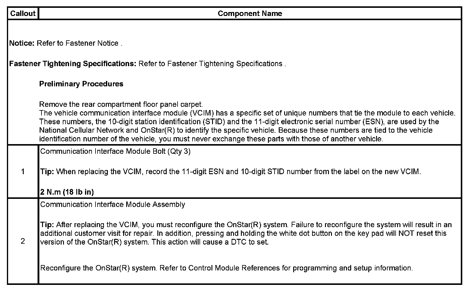 Communication Interface Module Replacement (Except Z06)