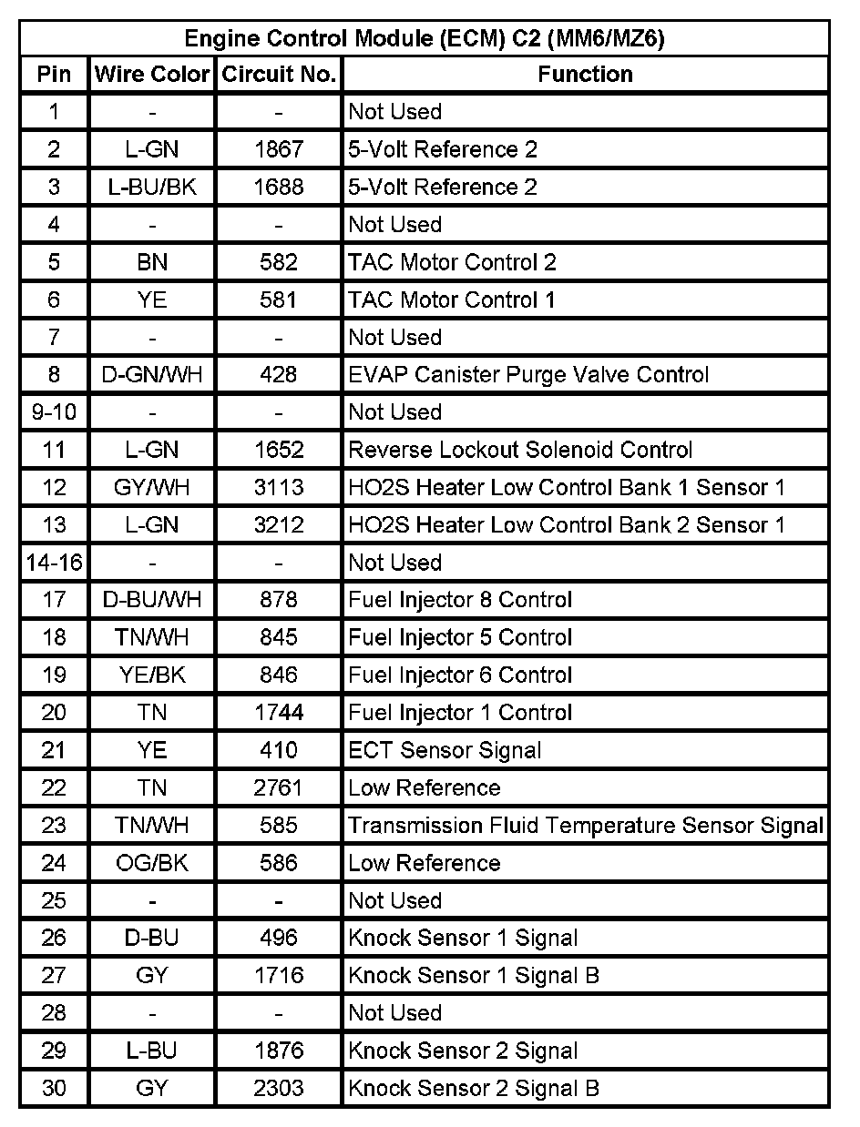 Engine Control Module (ECM) C2 (MM6/MZ6) (Pin 1 To 30):