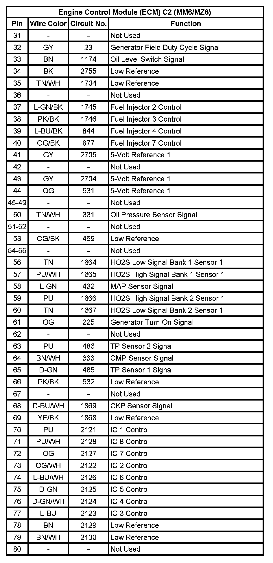 Engine Control Module (ECM) C2 (MM6/MZ6) (Pin 31 To 80):