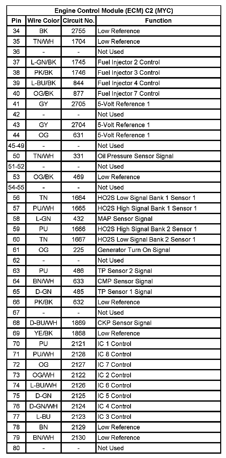 Engine Control Module (ECM) C1 (MYC) (Pin 34 To 73):