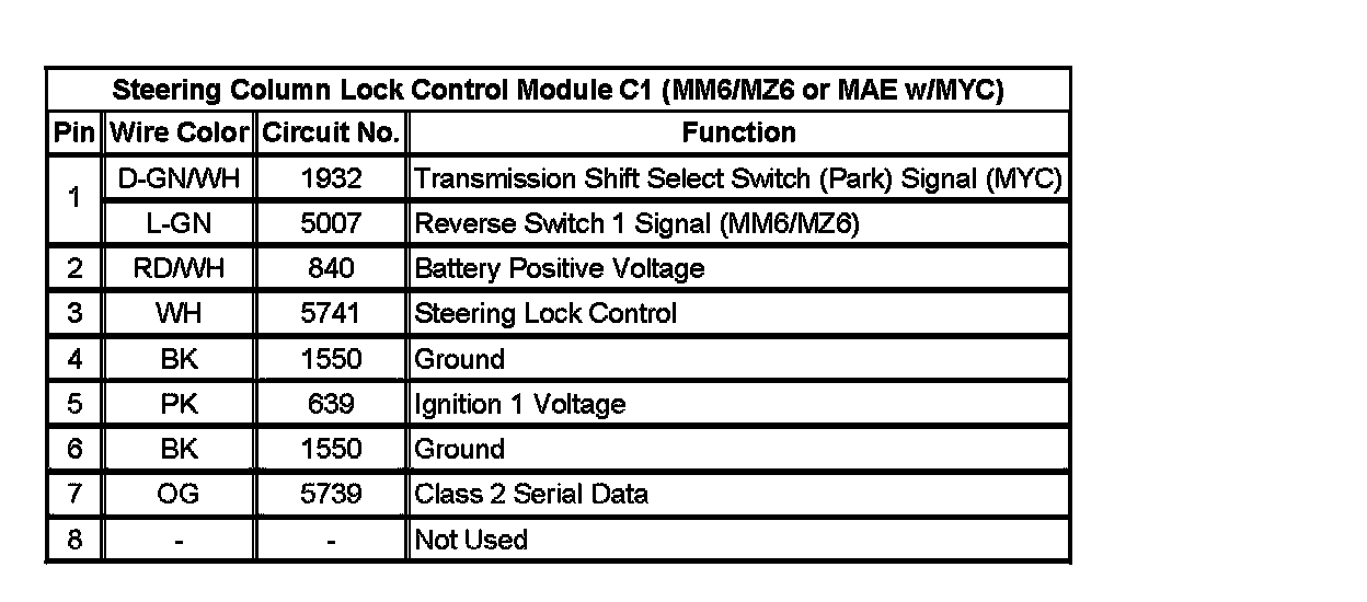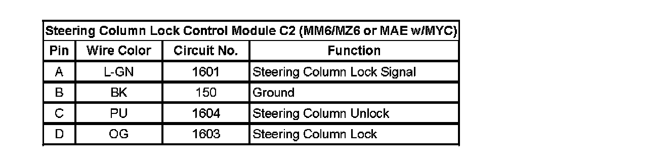 Steering Column Lock Control Module C2 (MM6/MZ6 Or MAE W/MYC):
