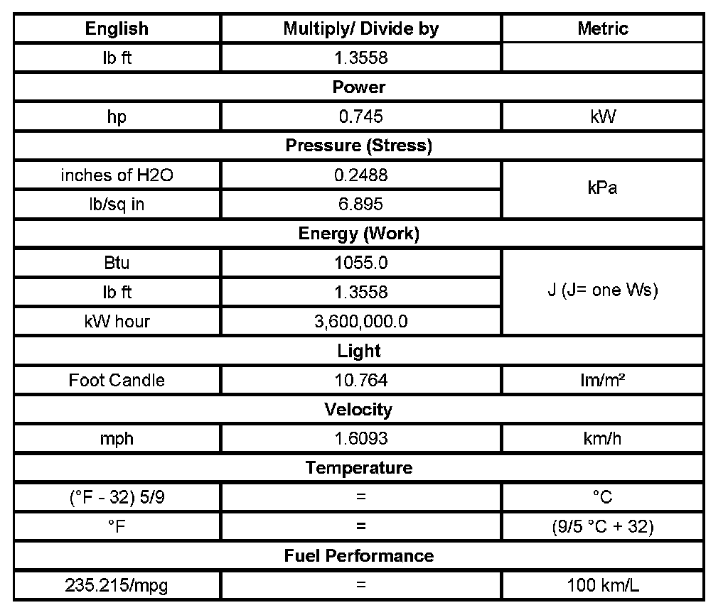 US English/Metric Conversion