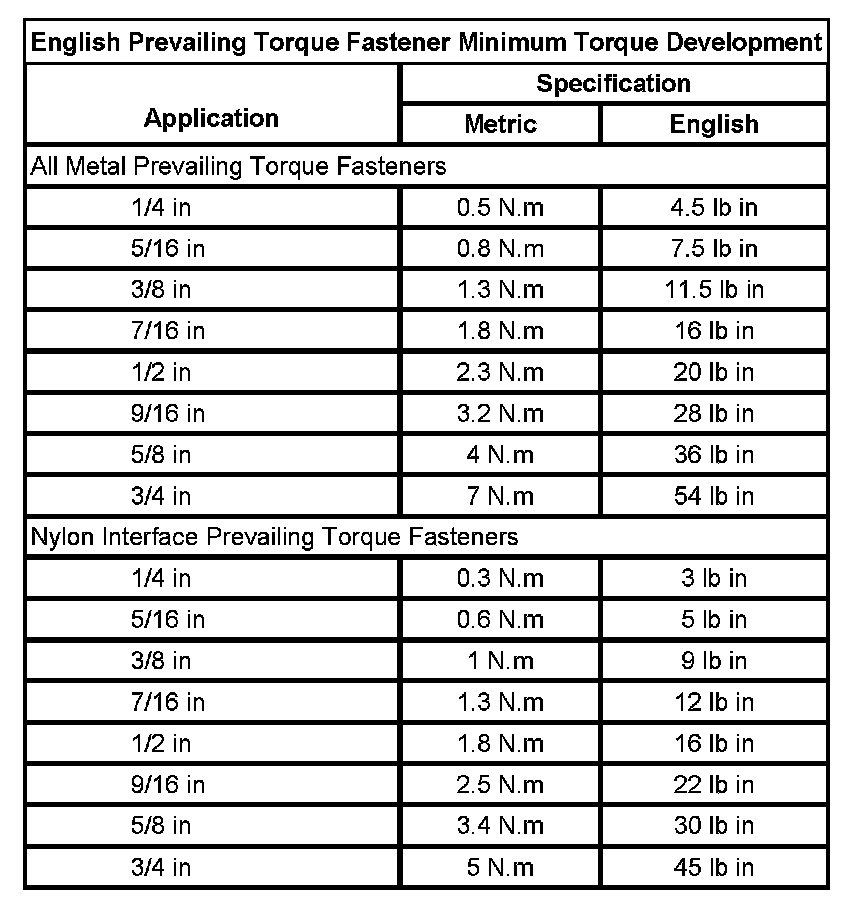 * The fastener develops the specified minimum torque against its counterpart prior to the fastener seating
