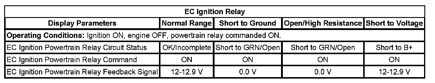 Important: On the scan tool, the powertrain relay is referred to as the EC ignition relay.
