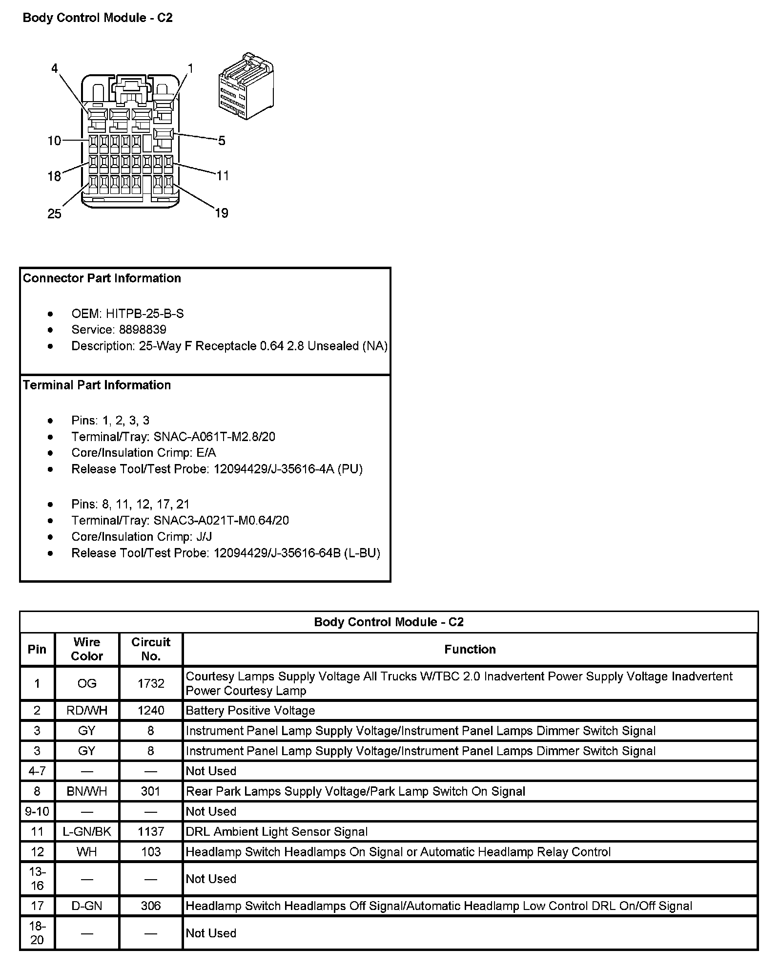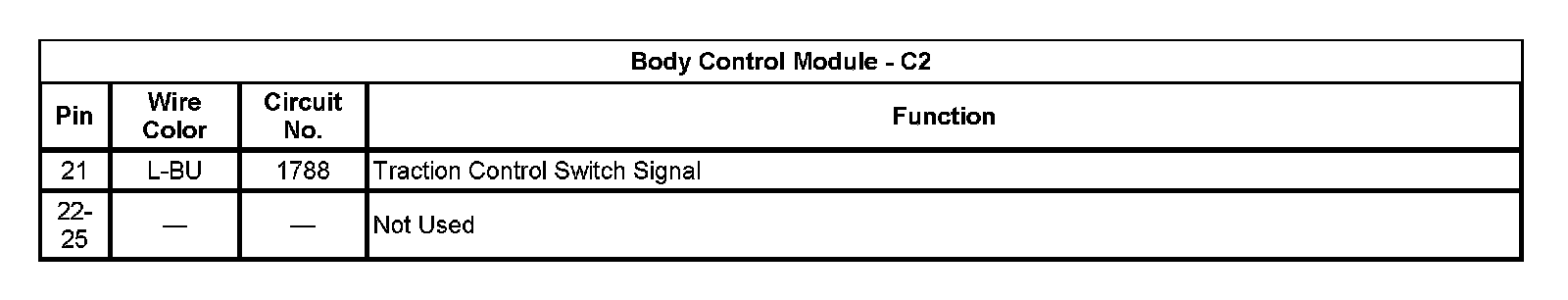 Body Control Module - C2 (Pin 21 To 25):