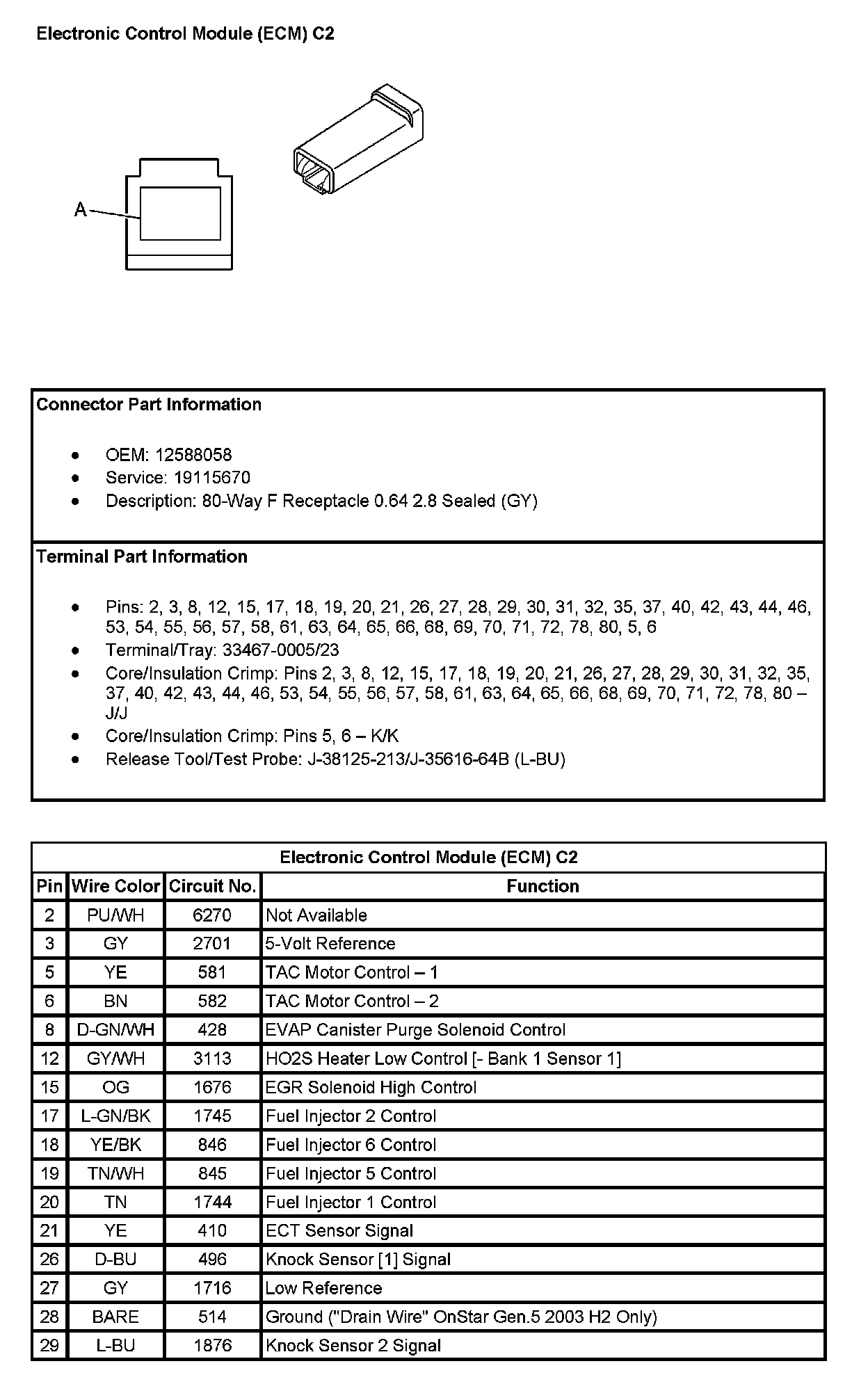Electronic Control Module (ECM) C2 (Pin 2 To 29):