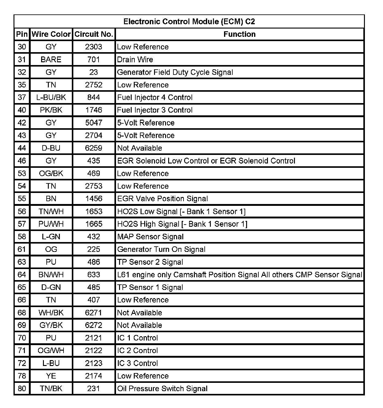 Electronic Control Module (ECM) C2 (Pin 30 To 80):