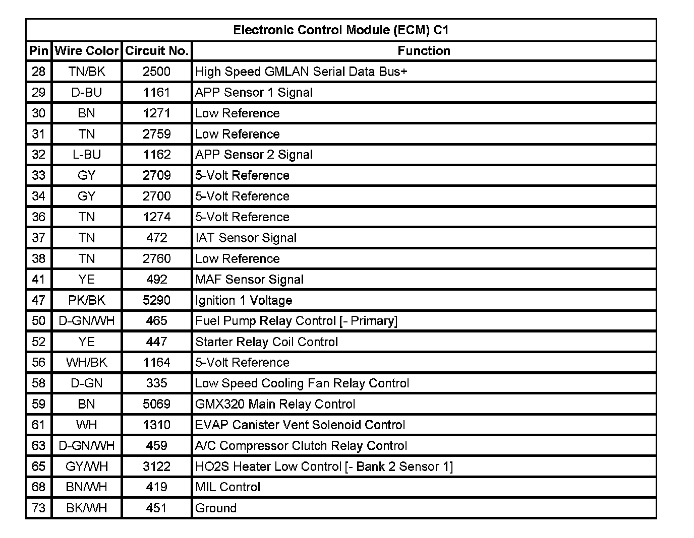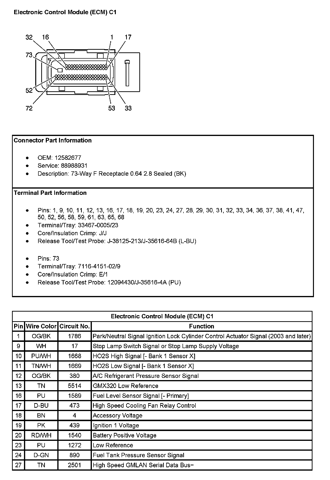 Electronic Control Module (ECM) C1 (Pin 28 To 73):