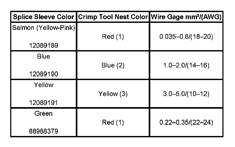4. Select the proper DuraSeal splice sleeve according to the wire size. Refer to the above table at the beginning of the repair procedure for the color coding of the DuraSeal splice sleeves and the crimp tool nests.