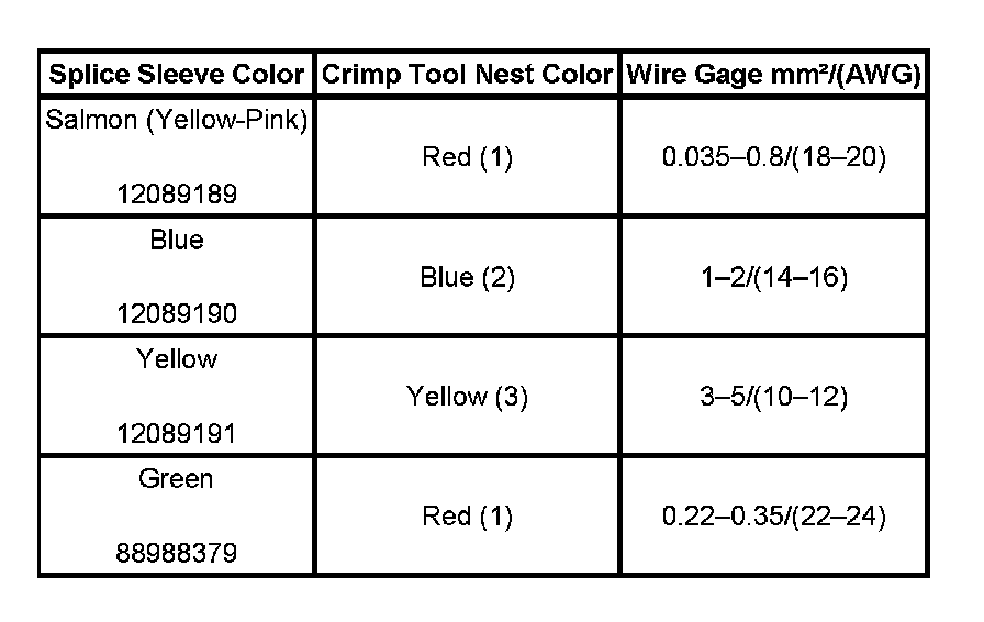 6. Select the proper DuraSeal splice sleeve according to the wire size. Refer to the above table at the beginning of the repair procedure for the color coding of the DuraSeal splice sleeves and the crimp tool nests.