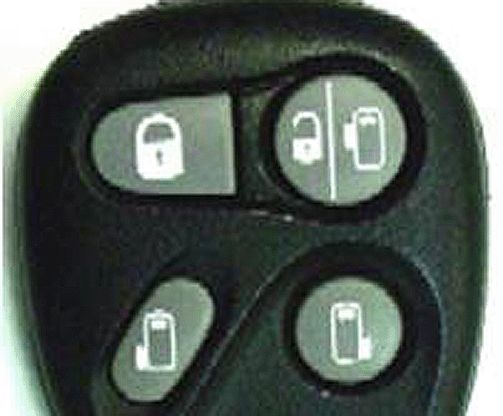 The difference between the two transmitters is the standard transmitter will not have the panel symbols on the buttons; it will have the standard symbols indicating Lock, Unlock, Panic Alarm and Cargo Door. The function of the transmitter is not affected. Reprogramming/Coding of the transmitter to the vehicle, resynchronization and battery replacement remains the same.