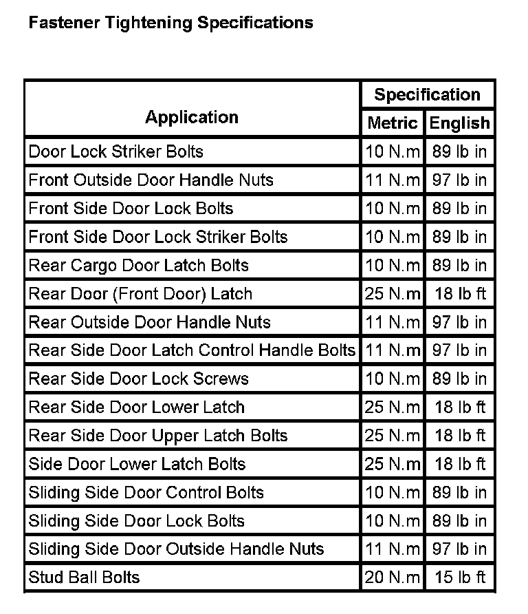 Fastening Tightening Specifications: