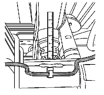 4. Measure the D height by measuring the distance between the rear axle tube or rear axle bracket on vehicles with 7300 GVW rating and the frame.