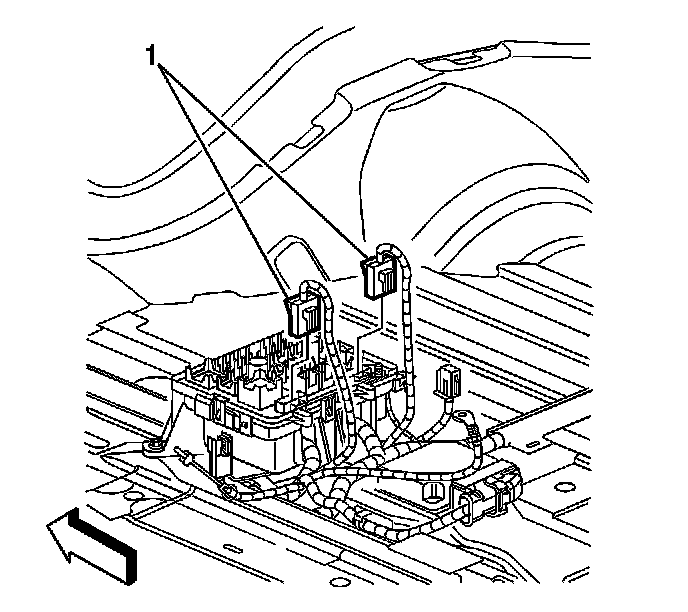 6. Disconnect the electrical connectors (1) from the junction block, if equipped with YF7.