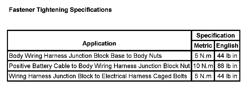 Fastener Tightening Specifications: