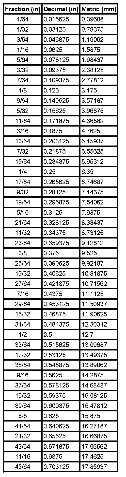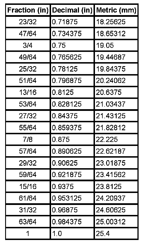 Decimal and Metric Equivalents