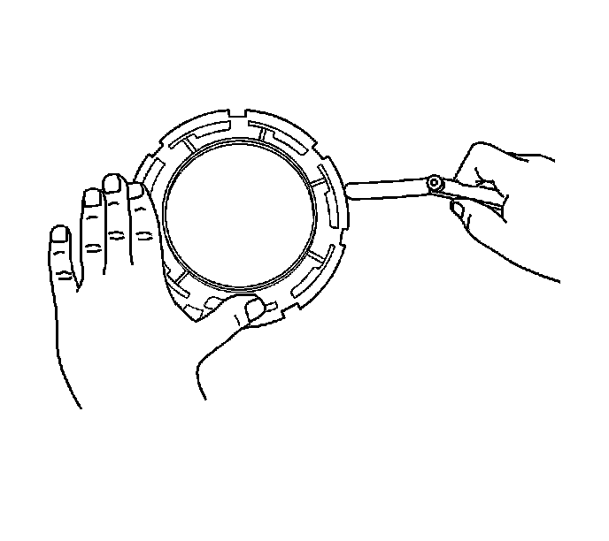 3. Use the J 45722 in order to install the fuel sender lock ring. Turn the fuel sender lock ring in a clockwise direction.