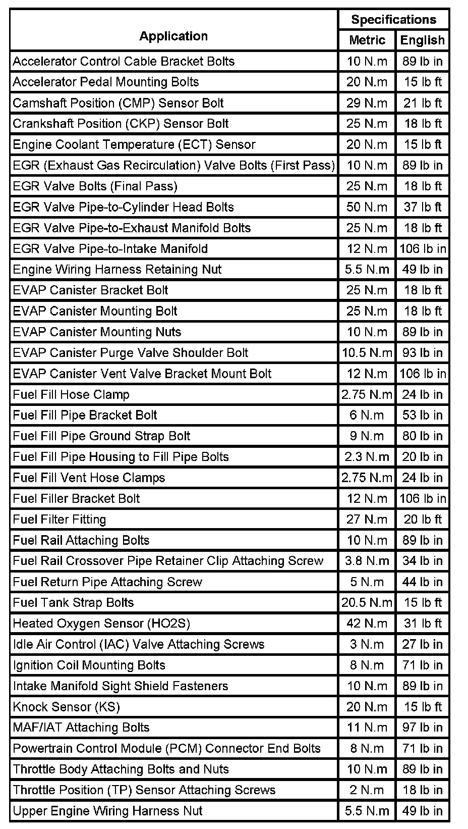 Fastener Tightening Specifications