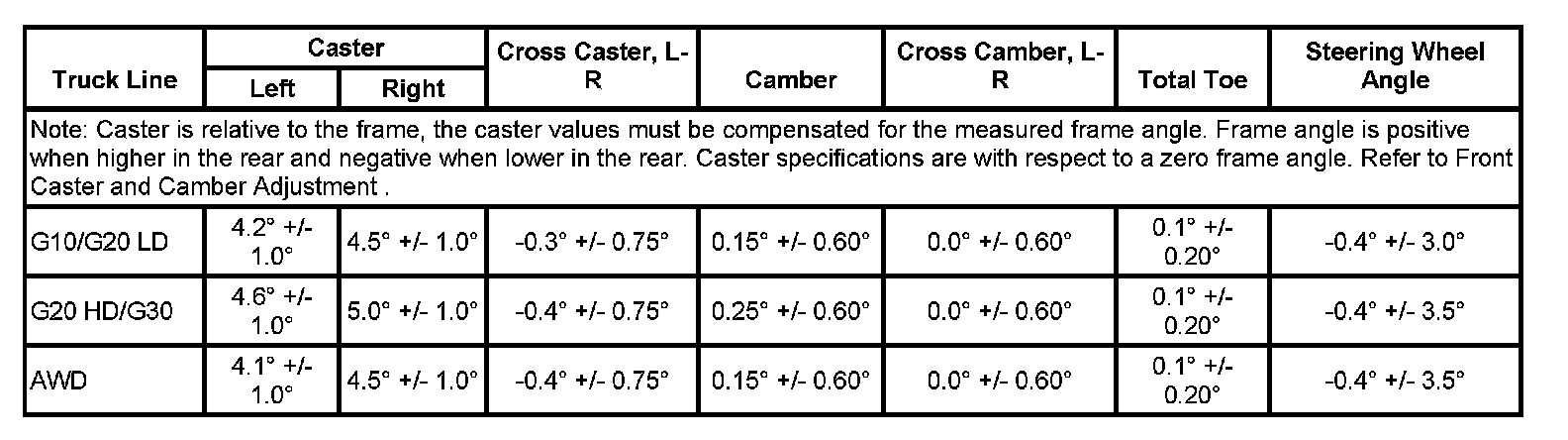 Wheel Alignment Specifications
