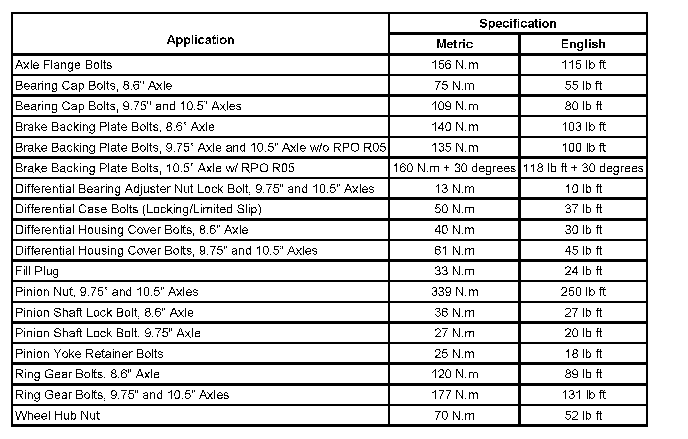 Fastener Tightening Specifications: