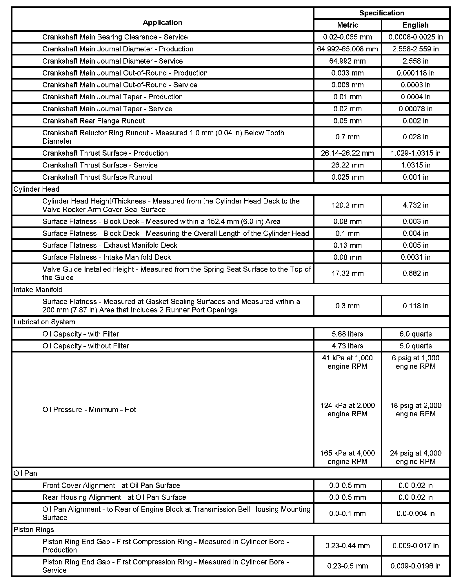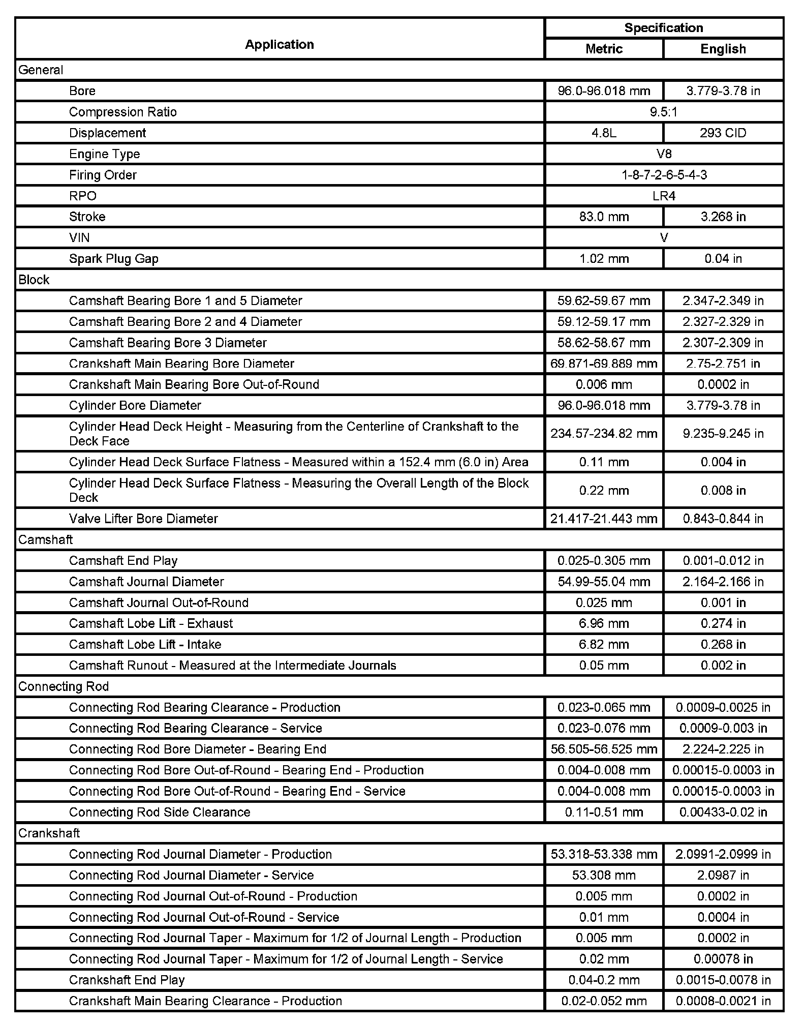 Engine Mechanical Specifications (LR4 VIN V)