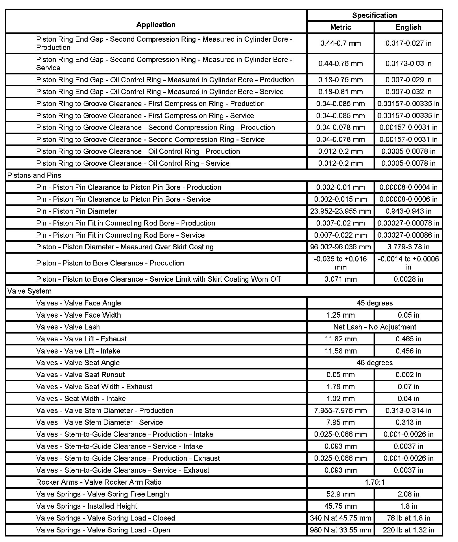 Engine General Specifications & Service Limits