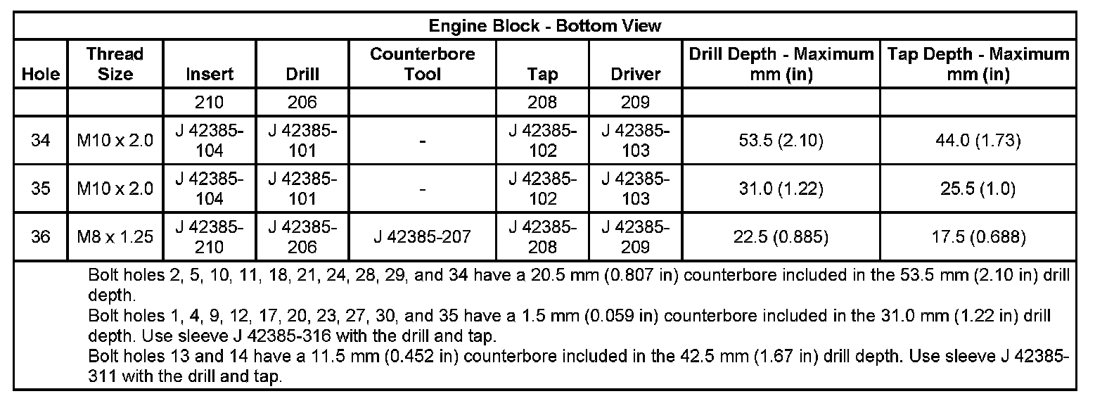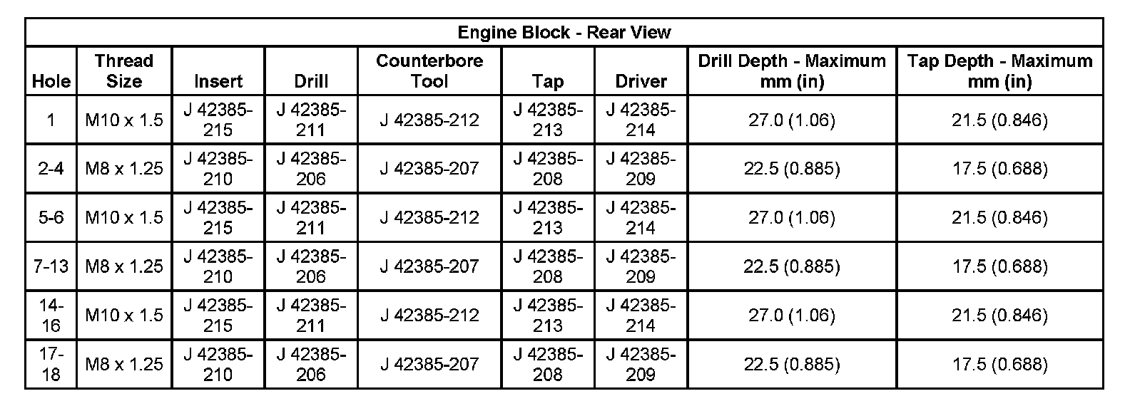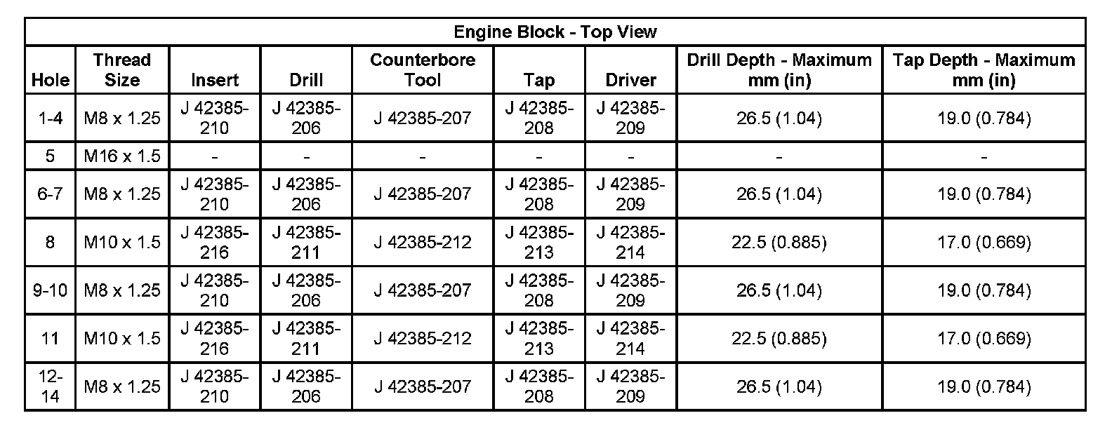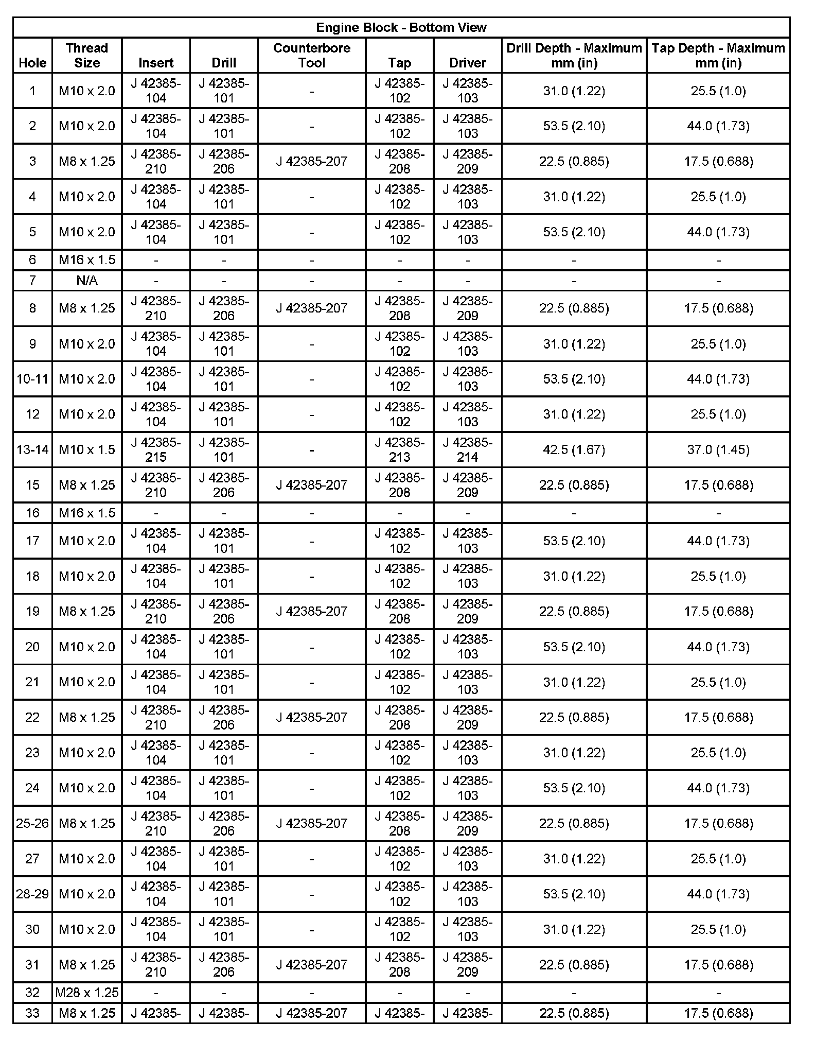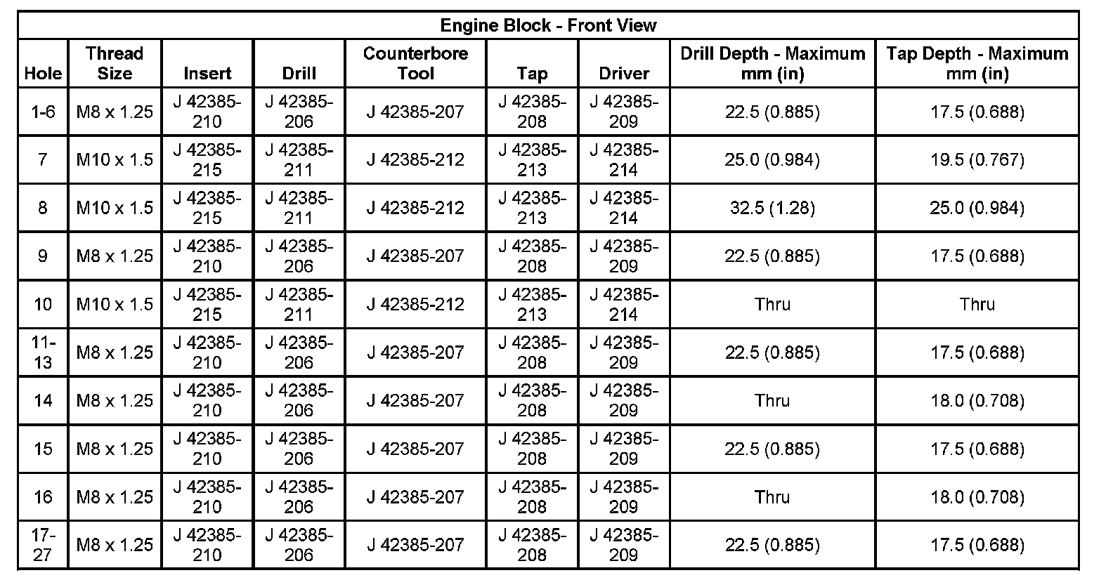 Thread Repair SpecificationsEngine Block: