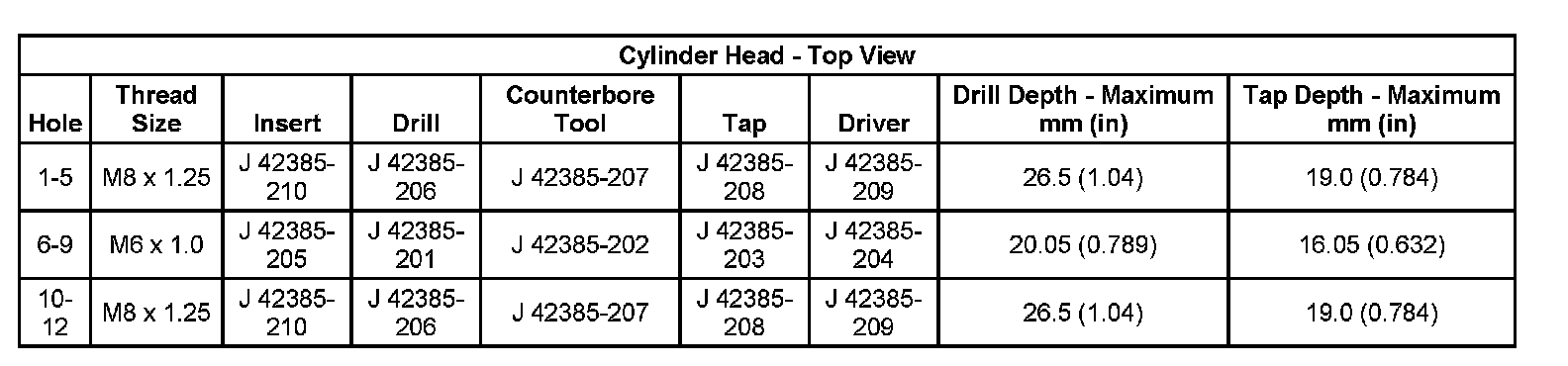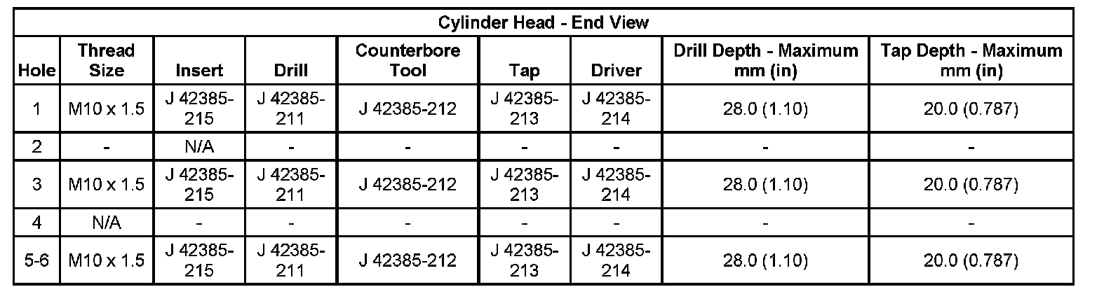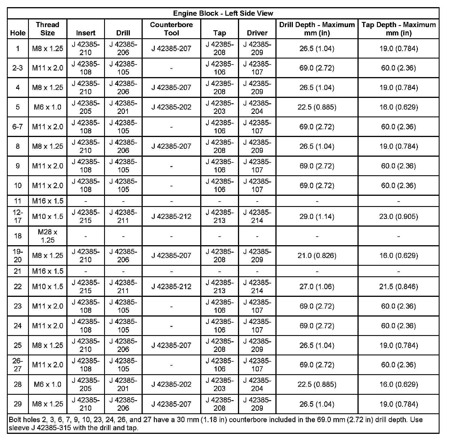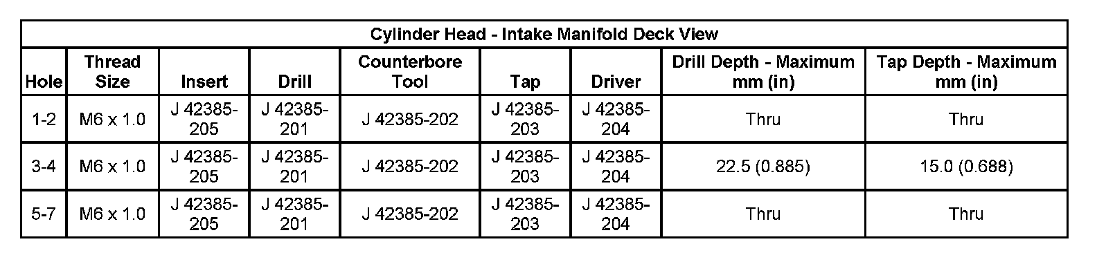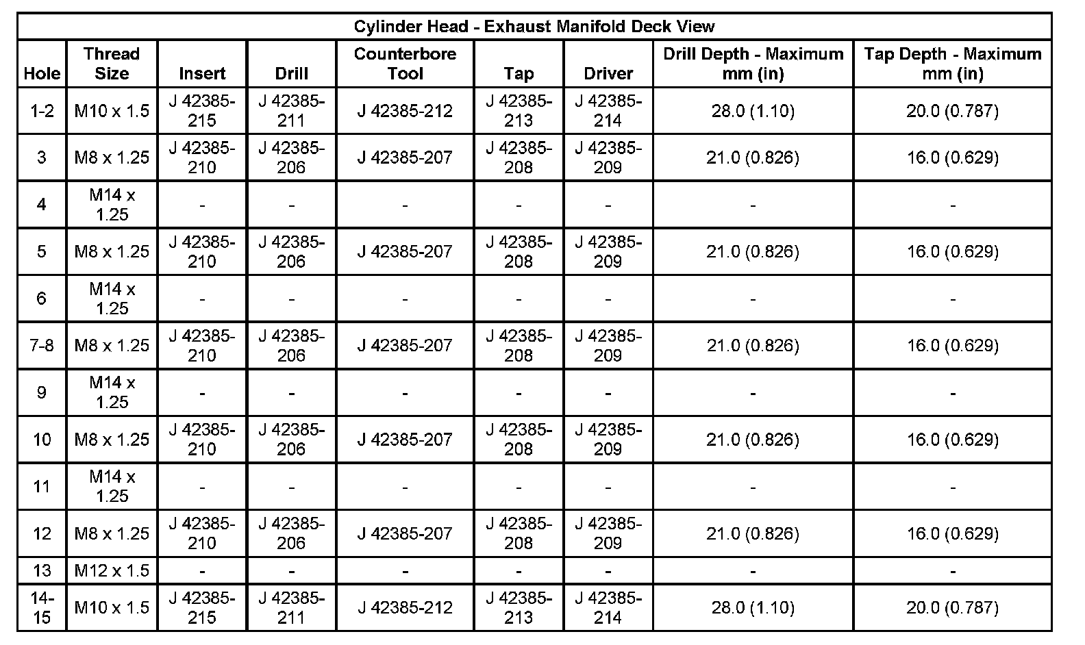 Thread Repair SpecificationsEngine Block:
