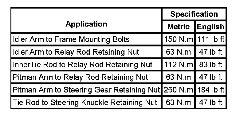 Fastener Tightening Specifications: