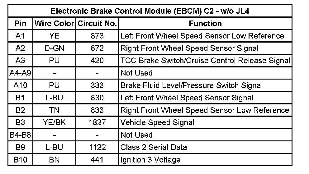 Electronic Brake Control Module (EBCM) C2 - w/o JL4: