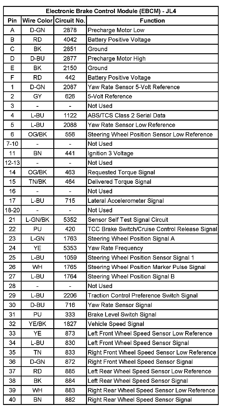 Electronic Brake Control Module (EBCM) C1 - w/o JL4: