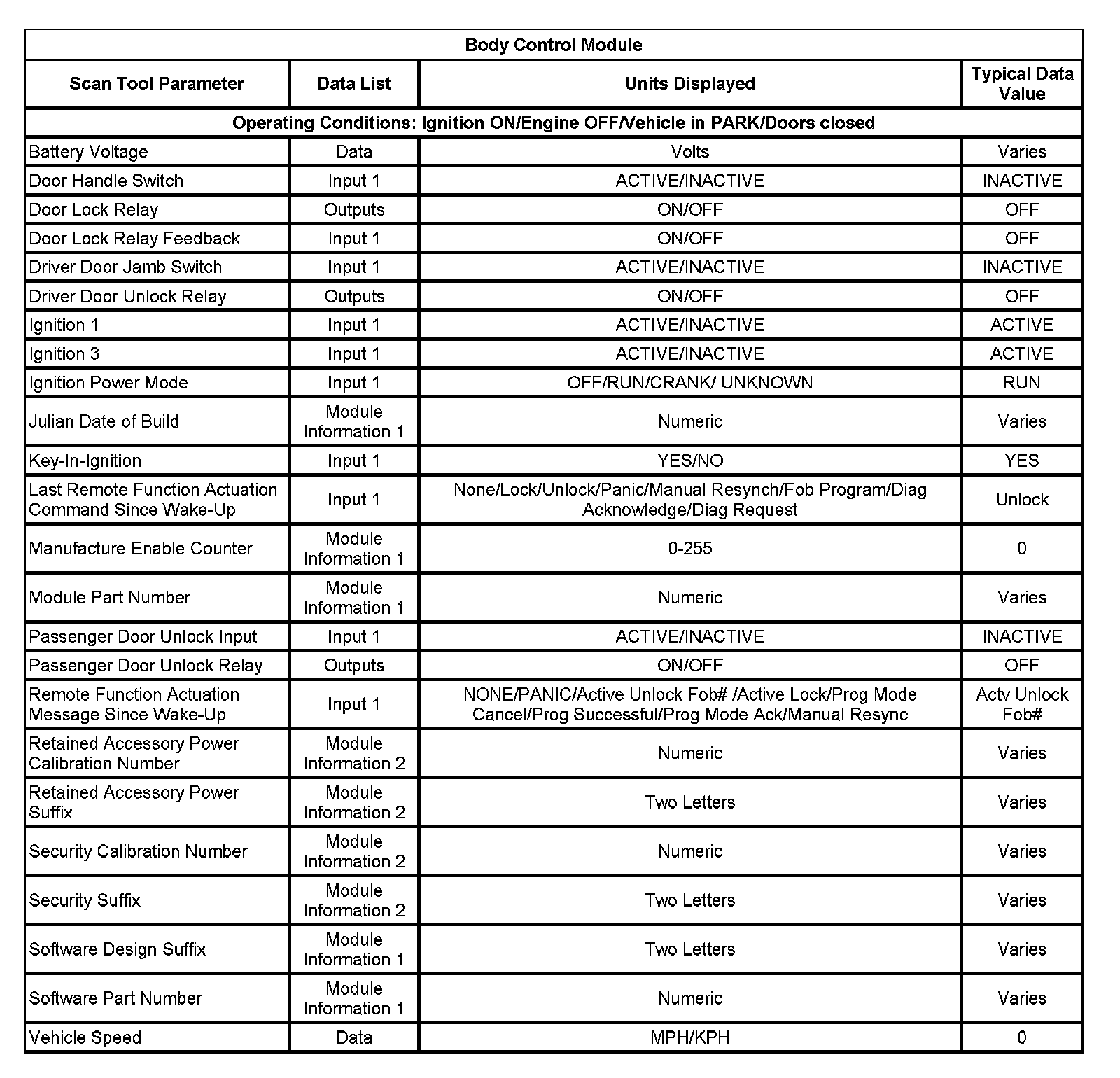 Scan Tool Data List